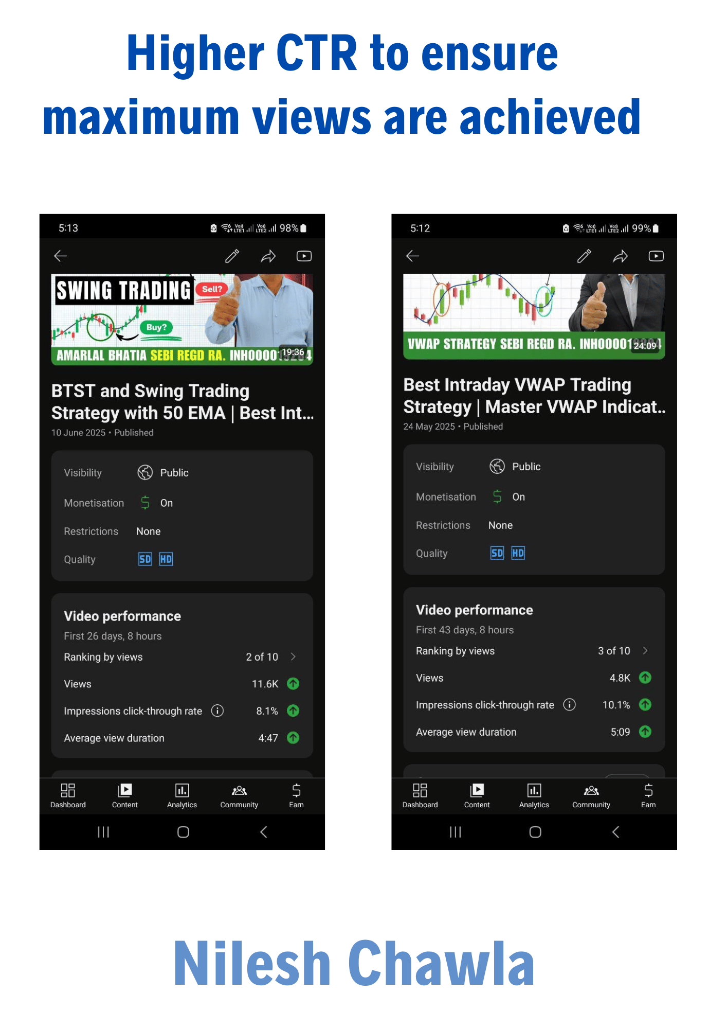 CTR & Retention Boost: Redesigned thumbnails, hooks, and titles to deliver a 42 % higher click-through rate and 31 % longer average watch time.