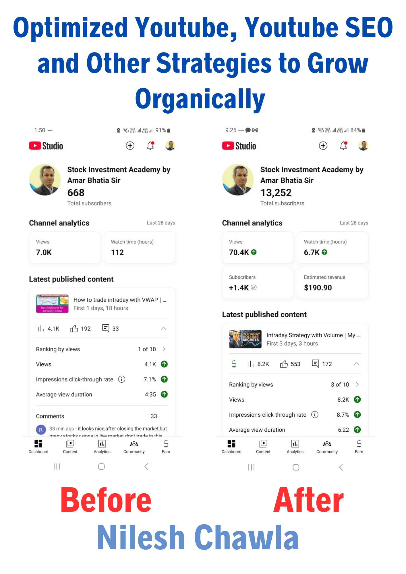 For Stock Investment Academy, I transformed a niche finance YouTube channel into a 13K+-subscriber brand community in under 6 months — powered entirely by organic growth. Through data-led storytelling, SEO precision, and algorithm-aligned publishing, the channel became a consistent traffic and lead generator for the business.